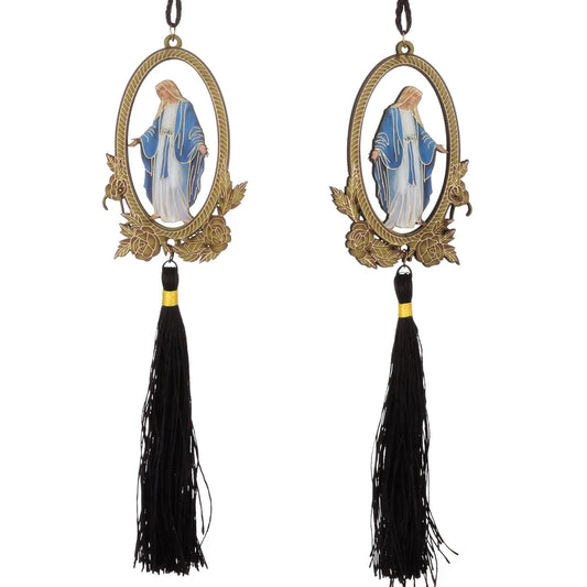 Cottvott Religious Wooden Our Lady of Grace Pendant Car Rear Mirror Hangings Home Door Decor Ornaments Decoraction Prayer Gifts